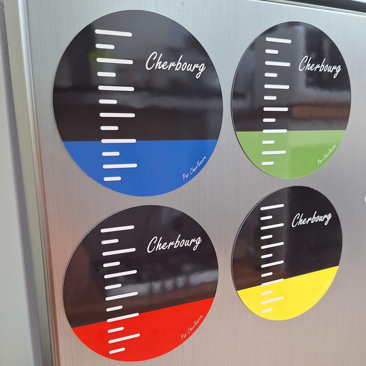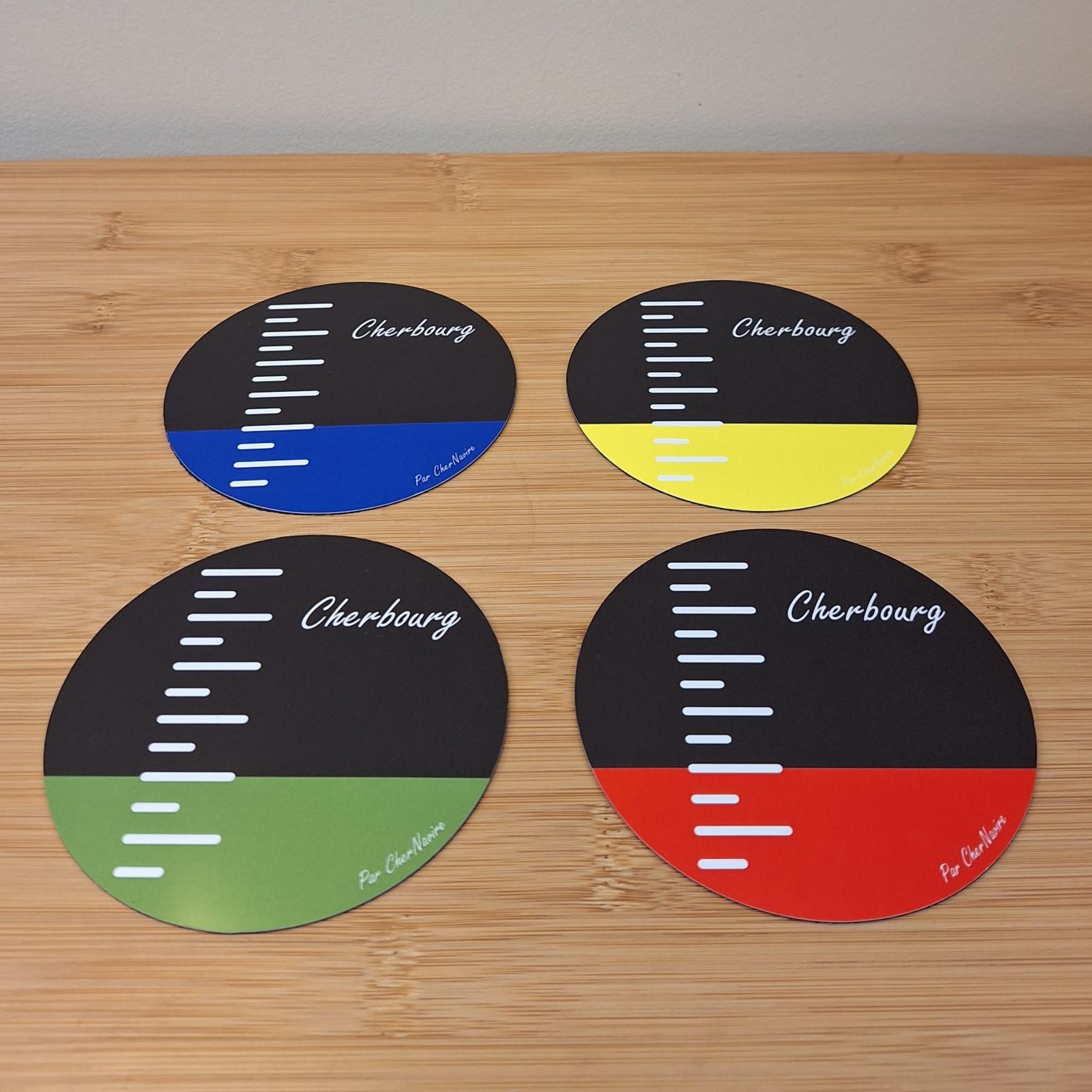 Ces dessous de verre magnétiques aux couleurs des mugs de Cherbourg décoreront vos tables lors de repas et apéritif, et pourront trouver une place sur votre réfrigérateur pour apporter une touche de décoration originale. Un deux en un ! 🙂