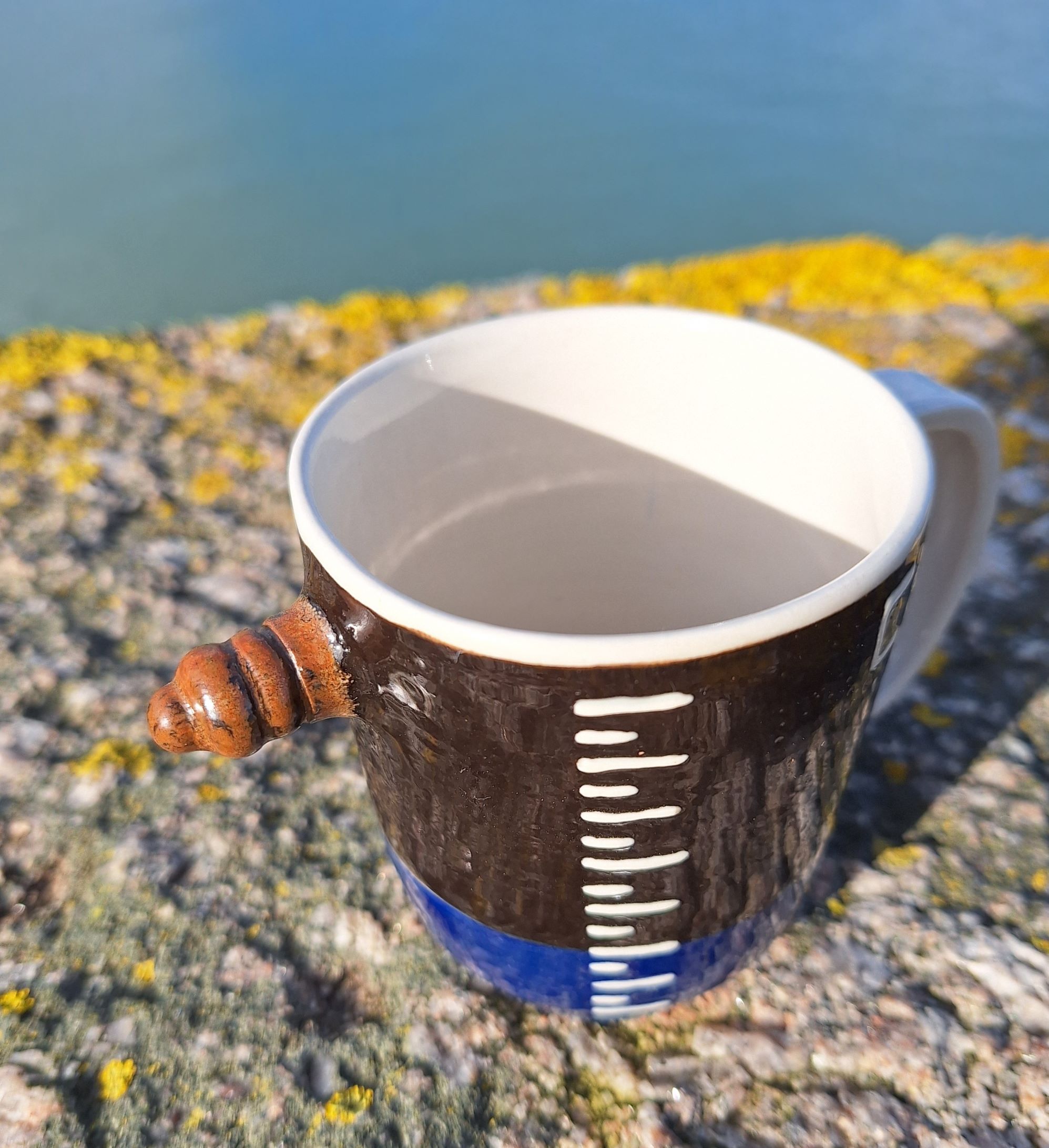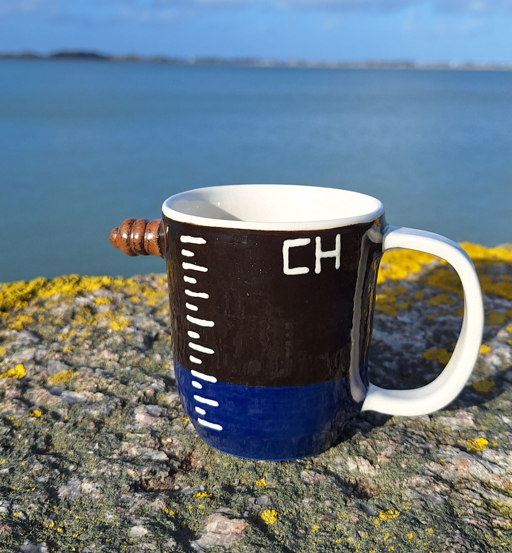Les Mugs de Cherbourg sont réalisés en grès avec une décoration faite à la main.